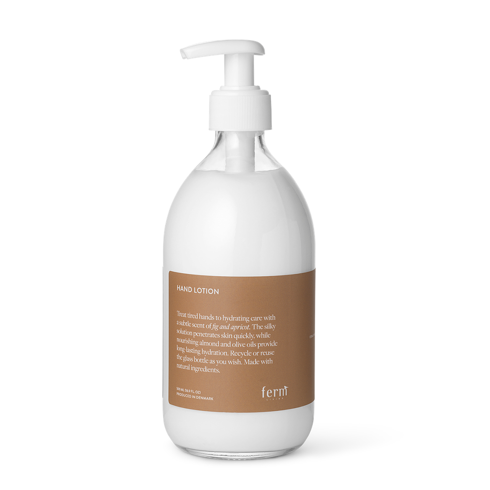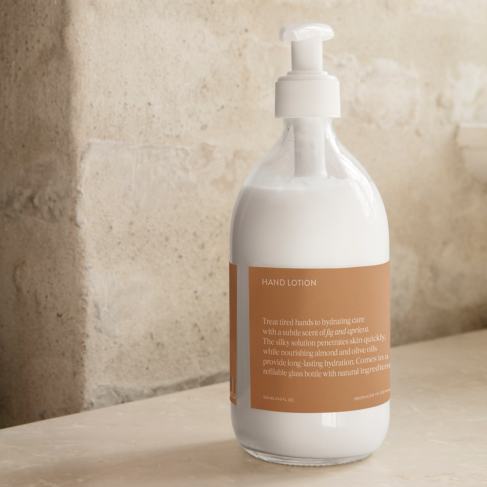 Treat tired hands to hydrating care with a subtle scent of fig and apricot. The silky solution penetrates skin quickly, while nourishing almond and olive oils provide long-lasting hydration. Comes in a refillable glass bottle with pump. Made with natural ingredients and produced in Denmark.