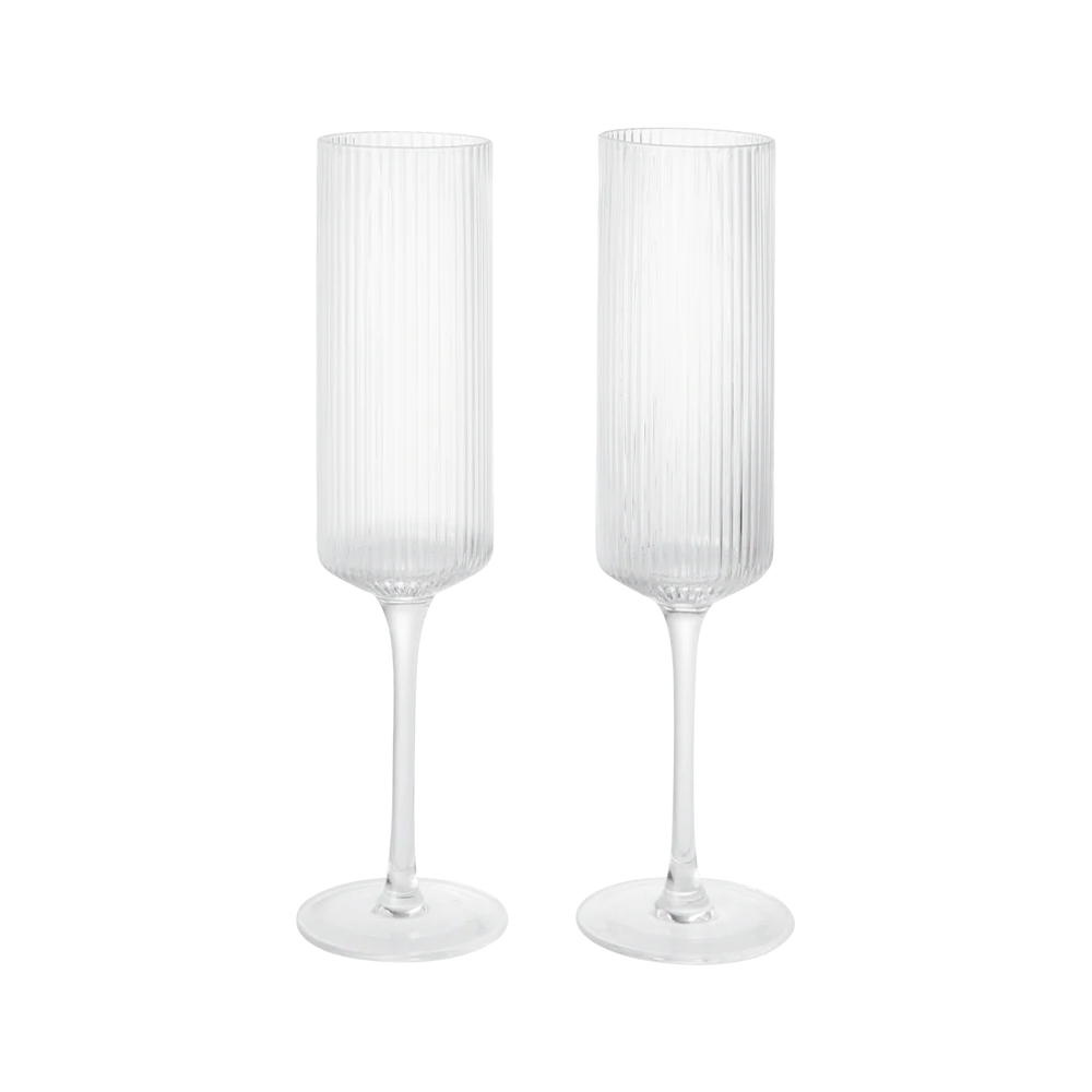 The Ripple Champagne Flutes bring a refined, elongated silhouette to the beloved Ripple series, perfectly suited for sparkling wines. Mouth-blown into the mould, each glass features the signature rippled surface that adds texture and a sense of movement. Their tall, slender shape enhances bubbles and aroma, making any toast feel celebratory.