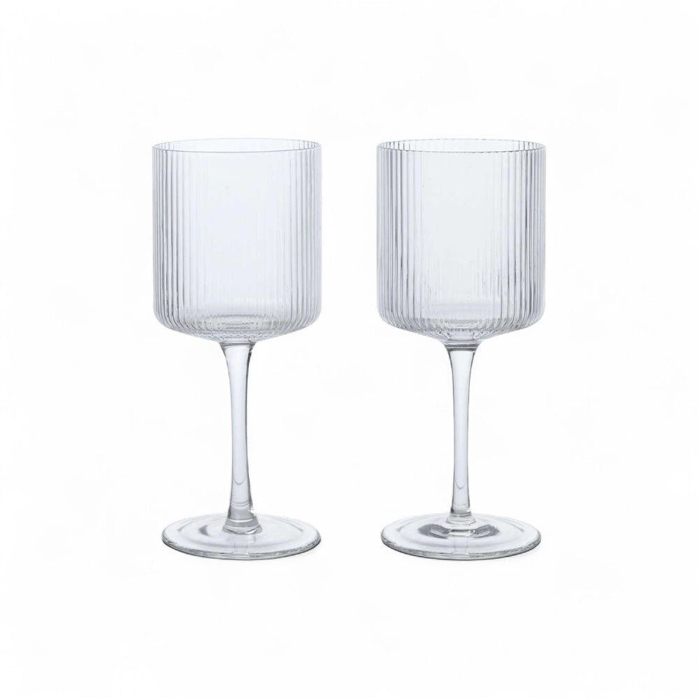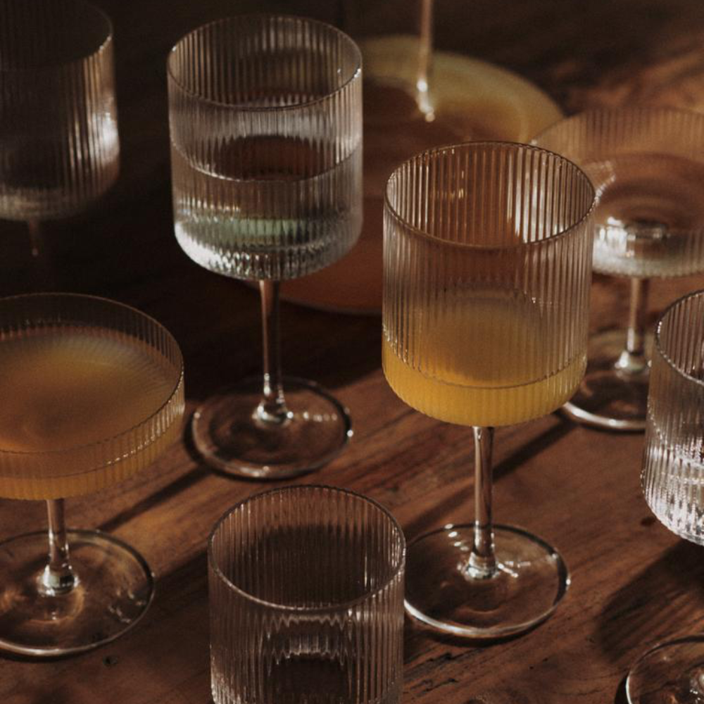 For a casual drink in the garden, the large dinner party or as the fancy supplement at brunch, the Ripple Wine Glass will complete any setting with its unique expression. Mouth-blown into the shape the wine glasses feature the series' characteristic rippled surface and geometric silhouette, making the set of two glasses stackable. Pair the glasses with the rest of the Ripple series and serve your favourite beverage in style.