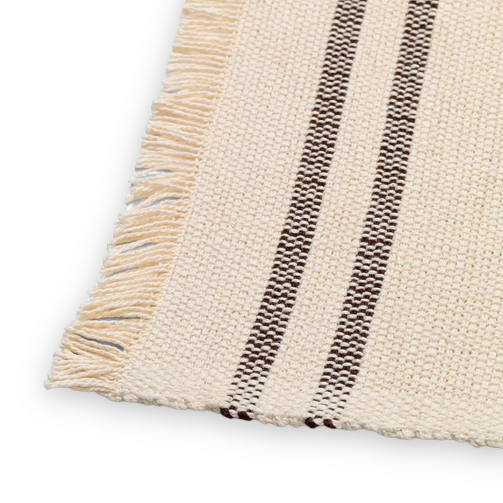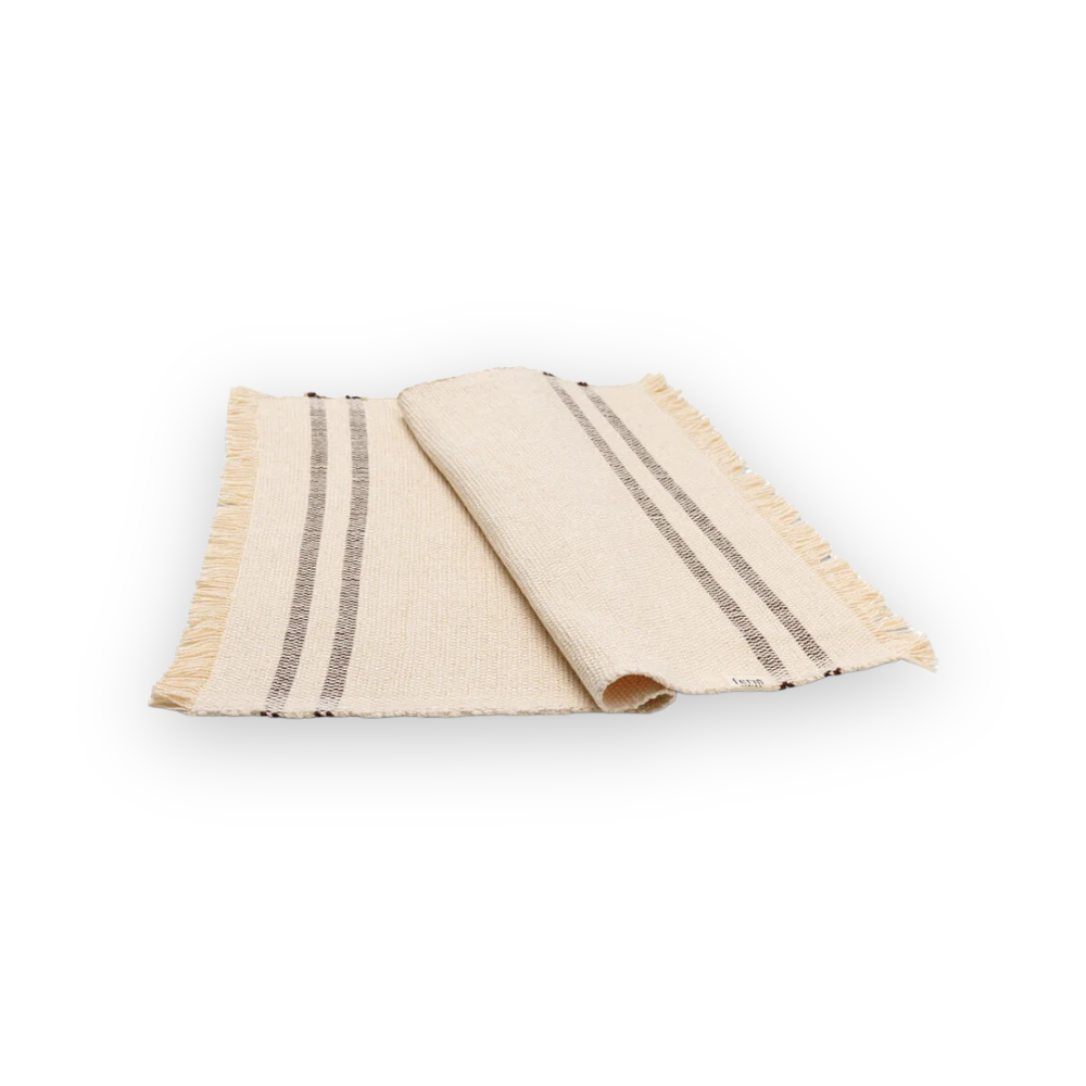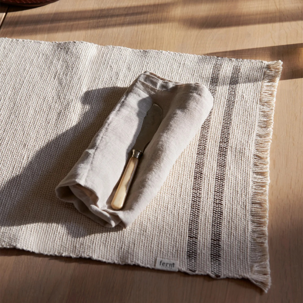 Make meal time mess free with the Savor Placemats. Made from undyed, organic cotton with two stripes woven along the edges, the placemats are machine washable, providing a practical and aesthetic solution to saving your table from unwanted spills. With decorative fringing on two sides, the tactile Savor Placemats have a simple and informal, handcrafted expression.
