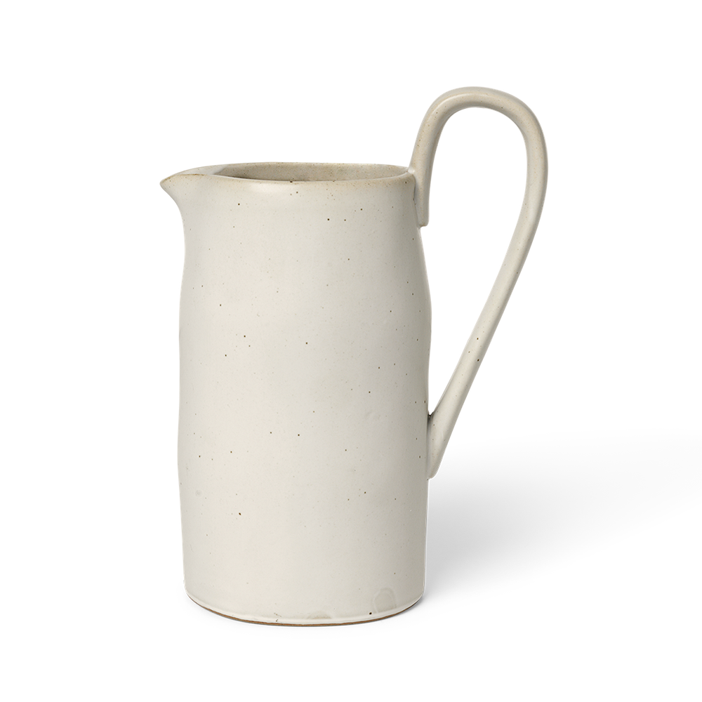 Flow is a series of perfectly imperfect tableware made to modern sensibilities using traditional craftsmanship techniques. All the items are glazed to achieve a unique expression. The simple, clean lines of the jug are offset with a distinctive elongated handle that makes a strong style statement on any table setting.