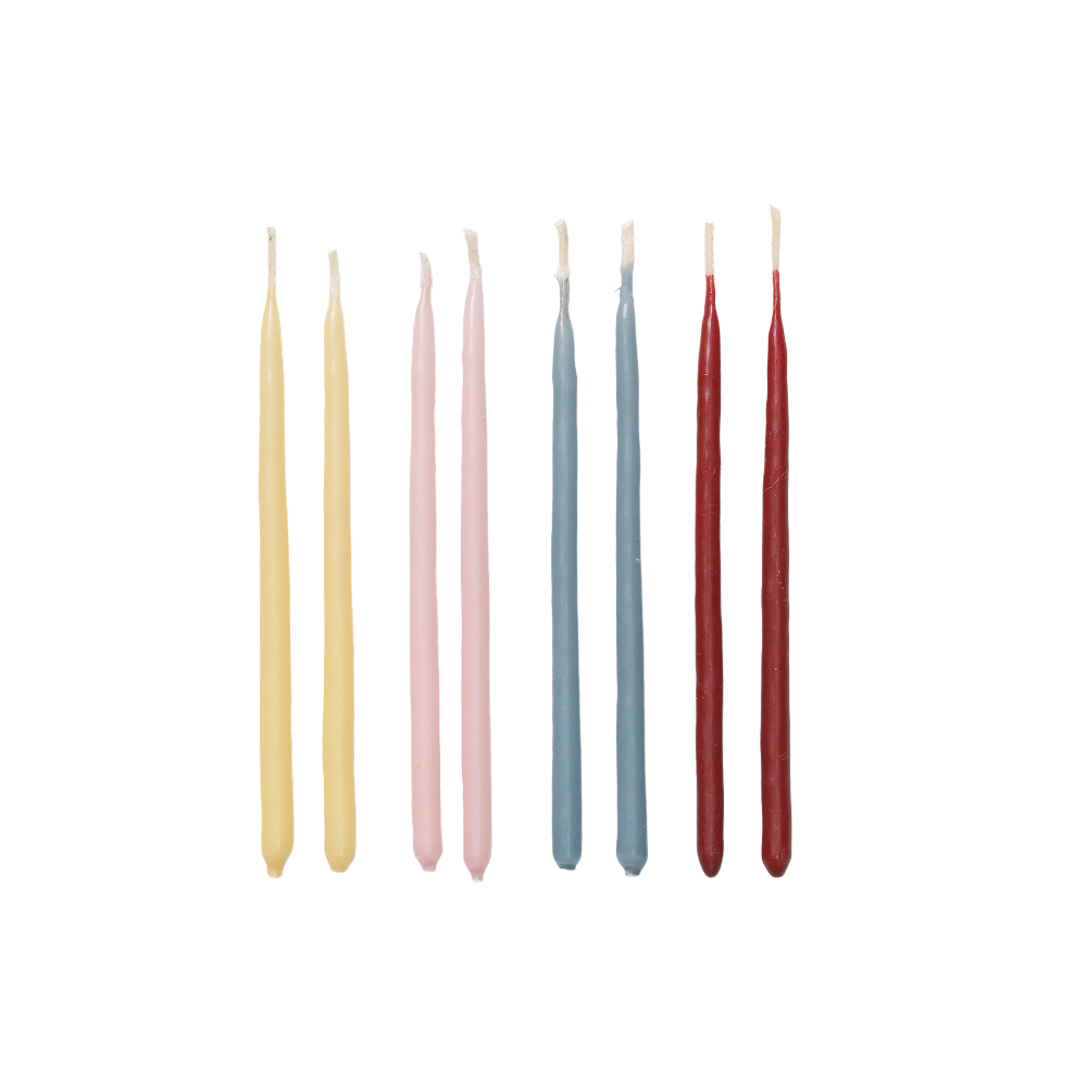 These tiny, hand-dipped candles come in various curated and elegant colours that will add a contemporary twist to festive cakes. With their small size yet long, slim appearance, the candles are ideal for celebrations such as birthdays and holidays.