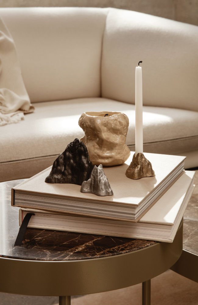 Invite organic, earth-inspired shapes into your home with our Stone Candleholders. Formed after the rough stone of a mountainside, the candleholder is made from casted metal and has a matte finish that compliments its jagged silhouette.