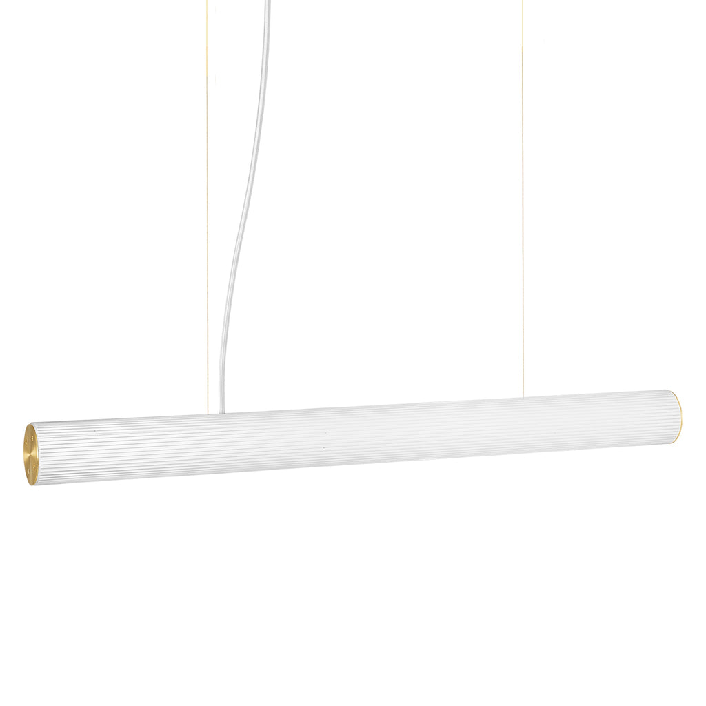 Fusing textural complexity with modern simplicity, the Vuelta Pendant features cylindrical translucent glass with a distinct rippled surface and brushed metal finishes. With an LED light source that emits a soft, diffused light, the Vuelta Pendant comes with an adjustable dimmer remote for ultimate ambiance control. Use the pendant on its own, or hang multiple lamps in a row for a bright, uniformed statement.