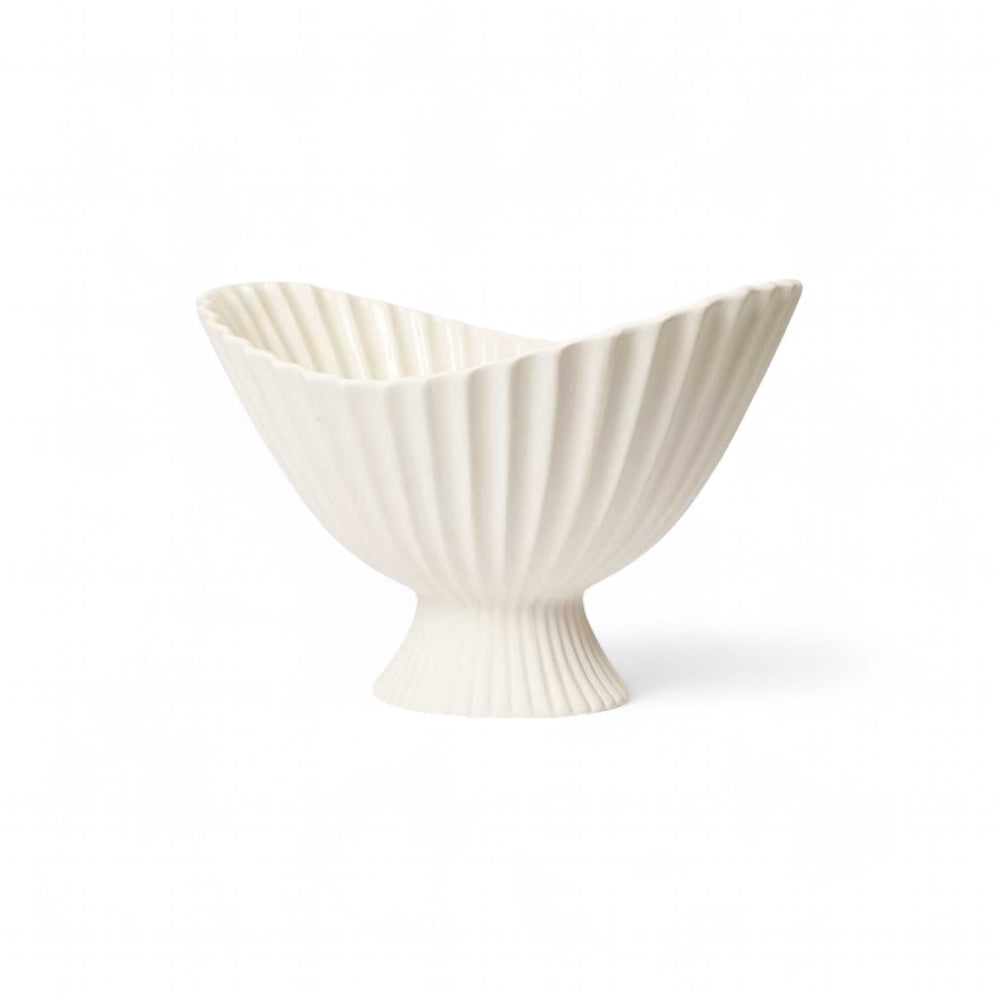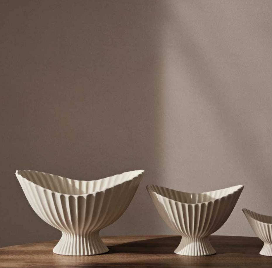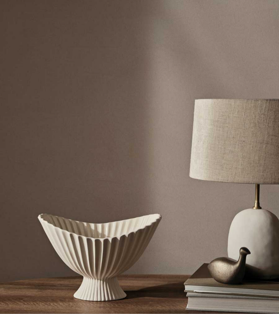 Instantly drawing attention, the sculptural, ceramic Fountain Bowl is an elevated bowl with a soft, pleated expression. Inspired by the shape of classic fountains, it can be used for trinkets, serving sweets or standing on its own as a decorative and delicate object. Making it suitable to store a variety of different objects, the Fountain Bowl has a matte exterior while the inside is finished with a clear glaze.