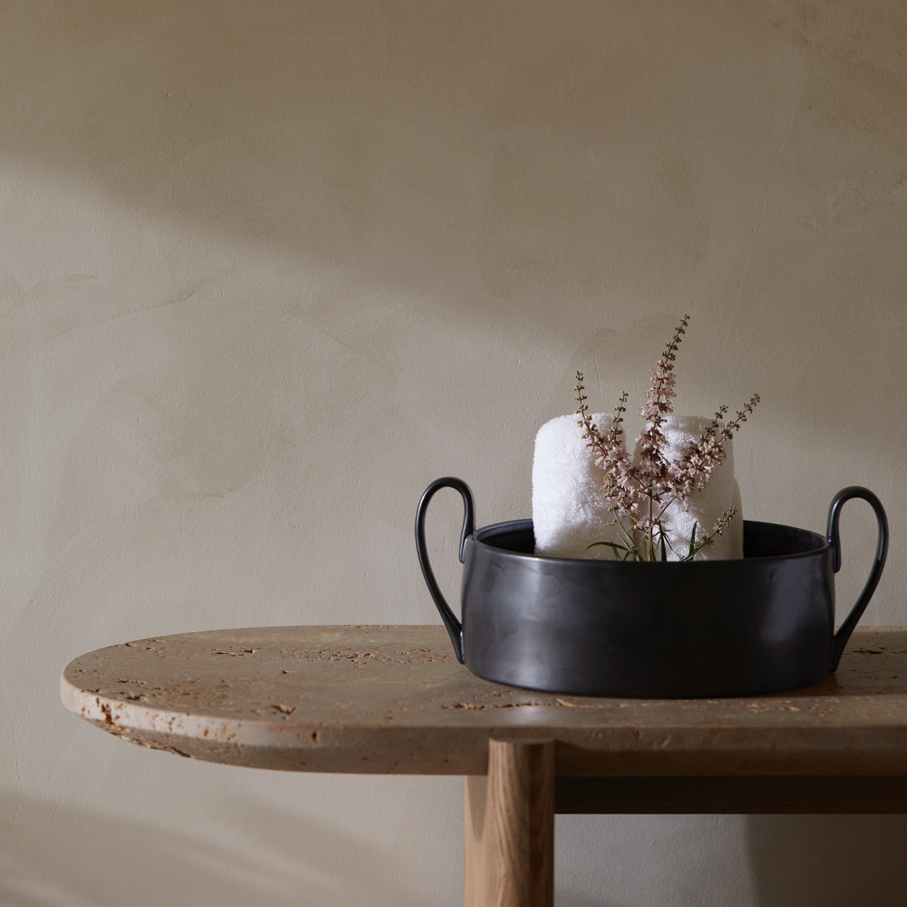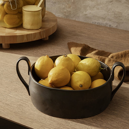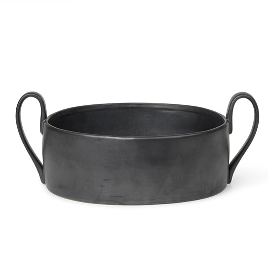 Flow is a series of perfectly imperfect tableware made to modern sensibilities using traditional craftsmanship techniques. All the items are detailed with a semi-matte glaze for a unique expression. The simple, clean lines of this large bowl are offset with two distinctive elongated handles that are sure to make this the central piece of any table setting.