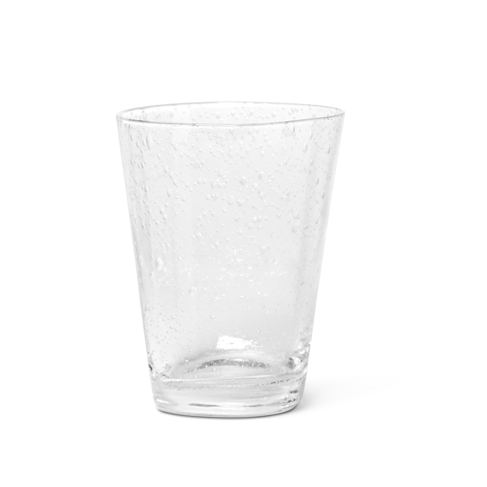 Distinguished by its bubbled appearance, created by deliberate pockets of air created within the layers of mouth-blown glass, our Brus Glass is a purposeful addition to any table setting thanks to its minimalist design and streamlined shape. The asymmetrical tumbler works equally well filled with water as it does a favourite tipple.