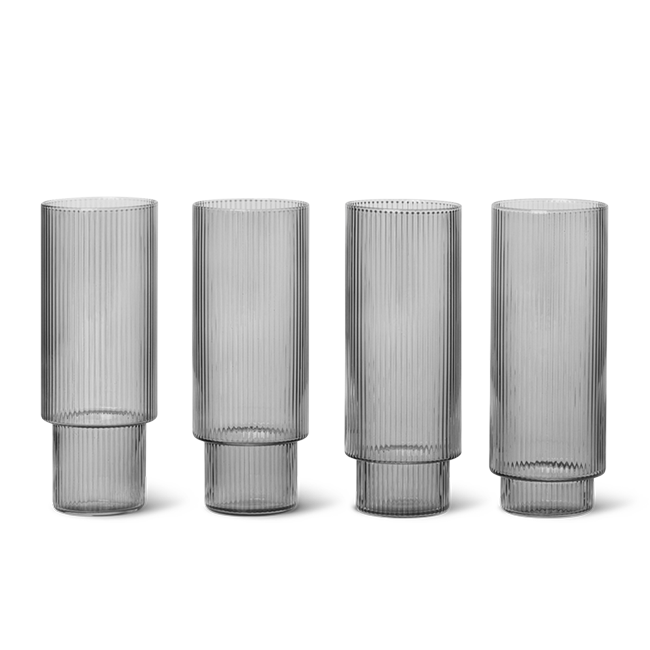 Ripple Long Drink Glasses - Set of 4 - Smoked Grey