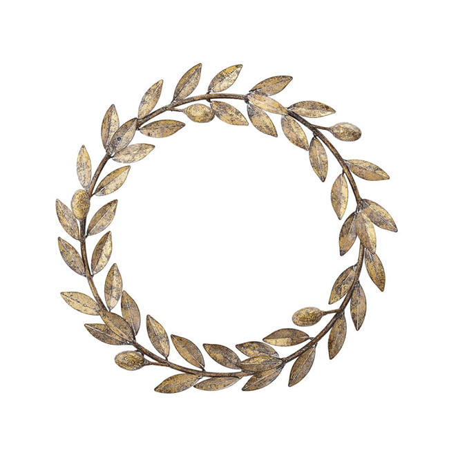 The round decoration with a diameter of 40 cm is made of iron in gold. A light used look ensures authenticity and makes the ring appear characteristic. Alone as well as with other Christmas decoration objects, the ring makes a good addition to any wall.