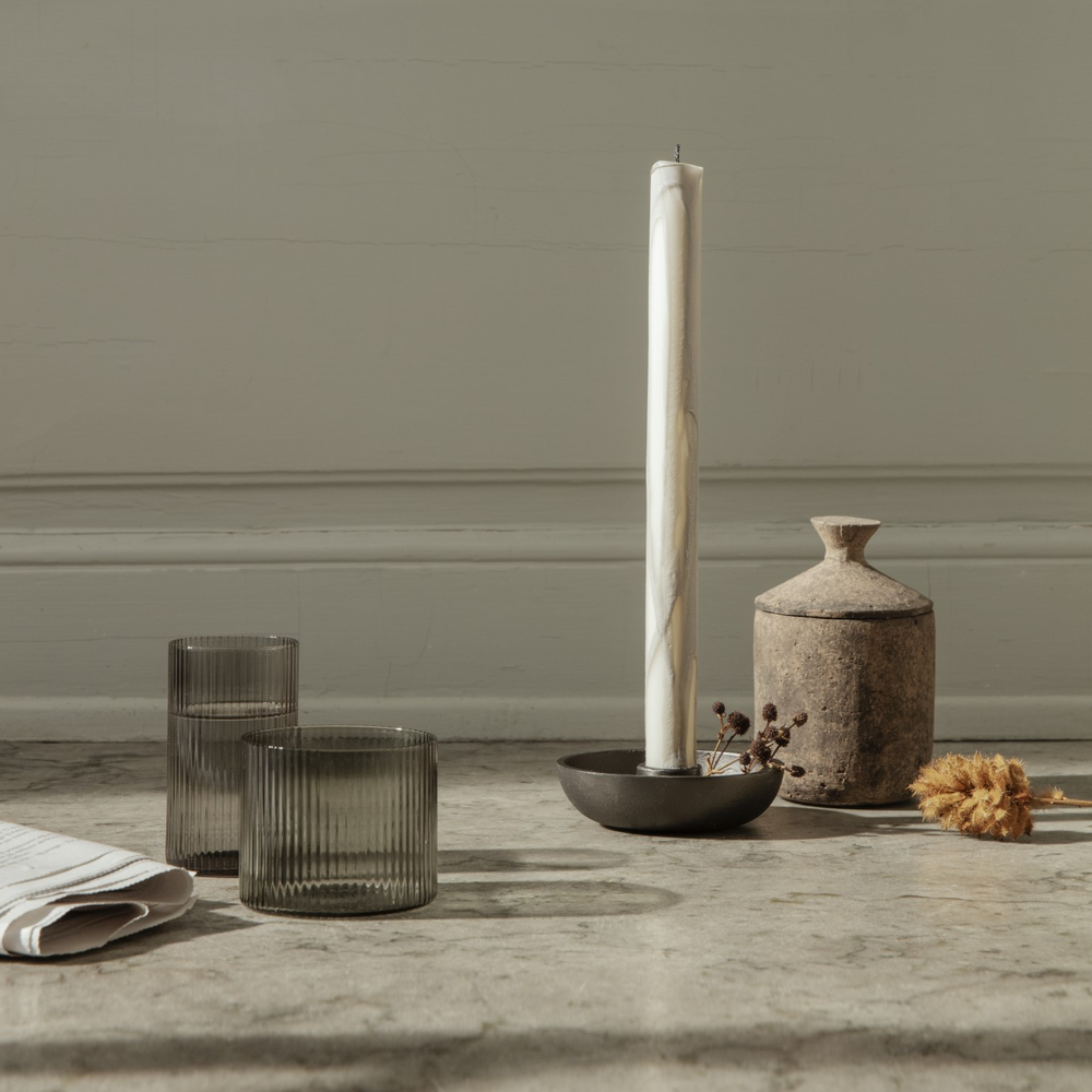 Mouth blown into the mould, this set of four low glasses features a distinctive, beautifully rippled surface. The vertical lines add a strong and sophisticated look to their understated, classic form and are perfect for casual dining. Pair them with other pieces in the Ripple glass collection for a unified dining experience.