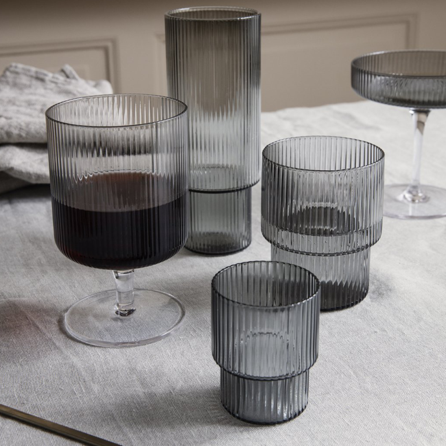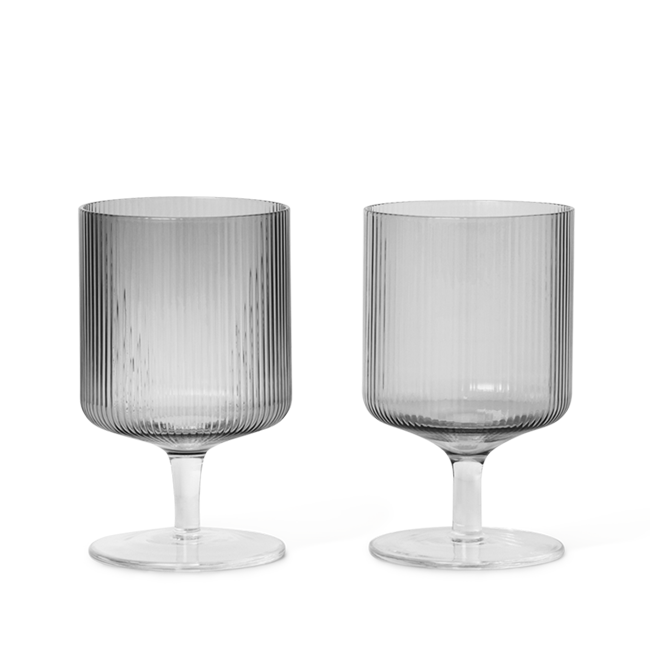 For a casual drink in the garden, the large dinner party or as the fancy supplement at brunch, the Ripple Wine Glass will complete any setting with its unique expression. Mouth-blown into the shape the wine glasses feature the series' characteristic rippled surface and geometric silhouette, making the set of two glasses stackable. Pair the glasses with the rest of the Ripple series and serve your favourite beverage in style.