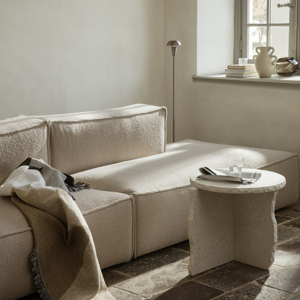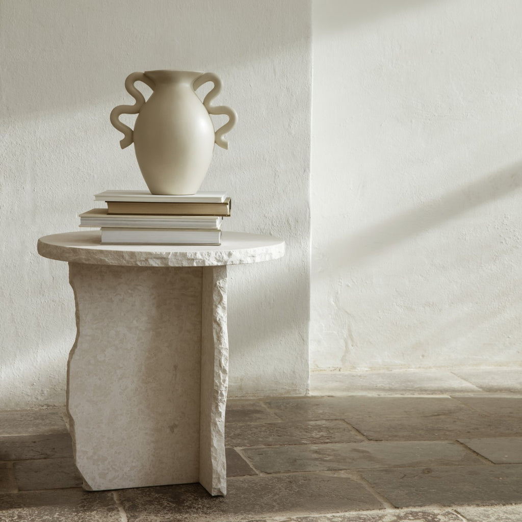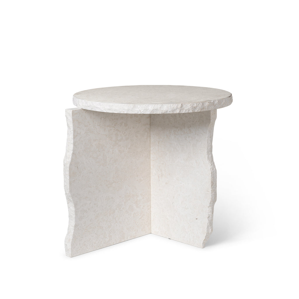 Whether you use it as a side table or as a decorative sculpture, the Mineral Sculptural Table makes an impactful impression in your home. Made in 100% bianco curia marble, it is a real statement piece, and with edges that are broken by hand with a chisel, each table is unique. Characterised by its distinctive T-shape, rough edges and contrasting polished surfaces, it has a raw, brutalist expression that will spark conversation.